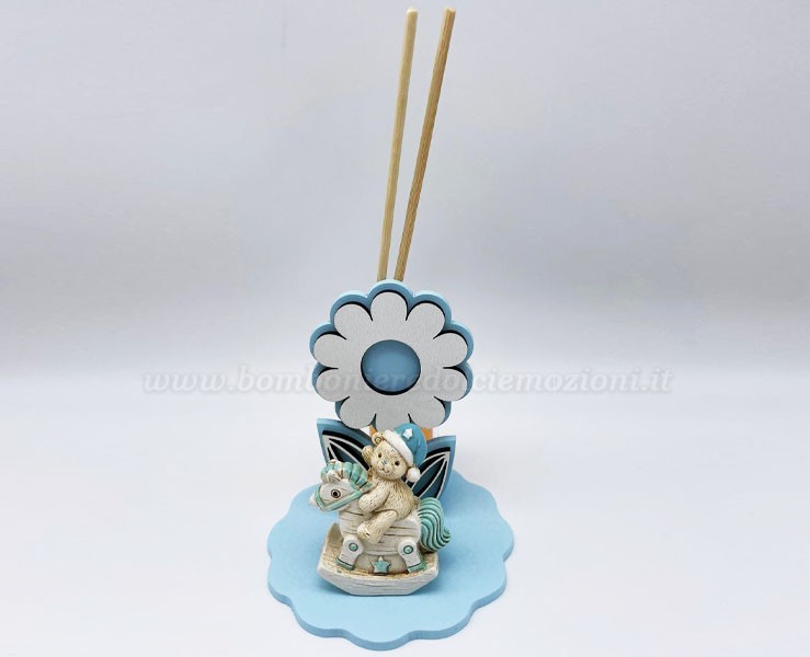 Bomboniera Prima Comunione Mariella Martini profumatore fiore con cavalluccio e orsetto