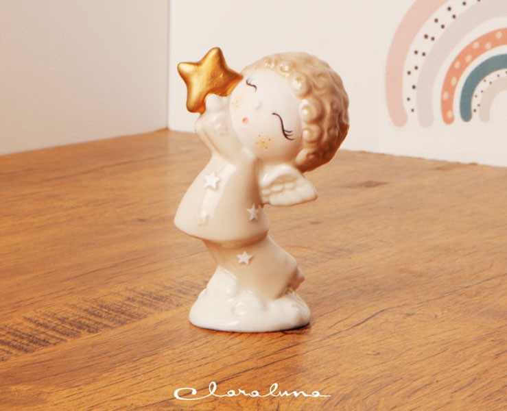 bomboniera nascita battesimo claraluna angelo femmina con stella piccolo