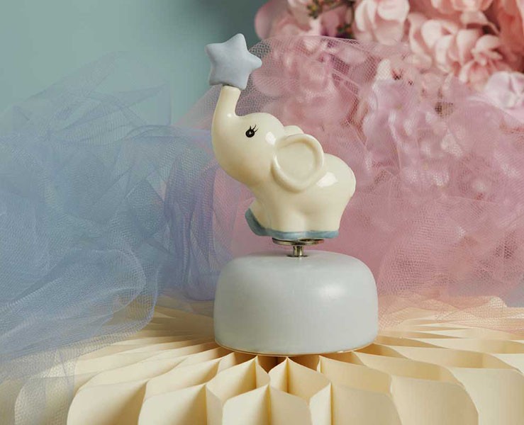 Bomboniera Battesimo Claraluna Carillon Elefantino Azzurro Stella Musica
