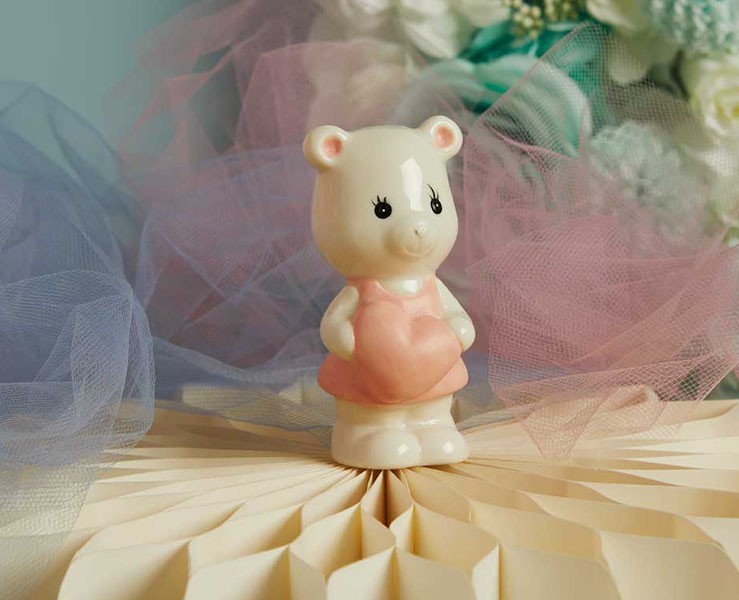 Bomboniera Battesimo Claraluna Statuetta Orsetto Cuore Rosa Ceramica