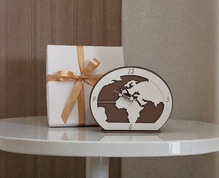 Bomboniera Matrimonio Orologio da Tavolo Mappamondo in Legno