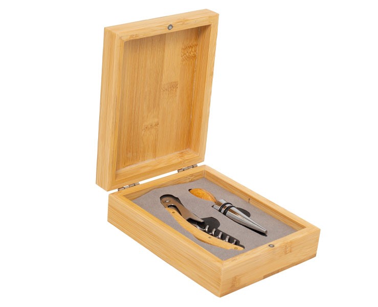BOMBONIERA MATRIMONIO HARMONY SET DA VINO 2 PEZZI CON SCATOLA IN LEGNO