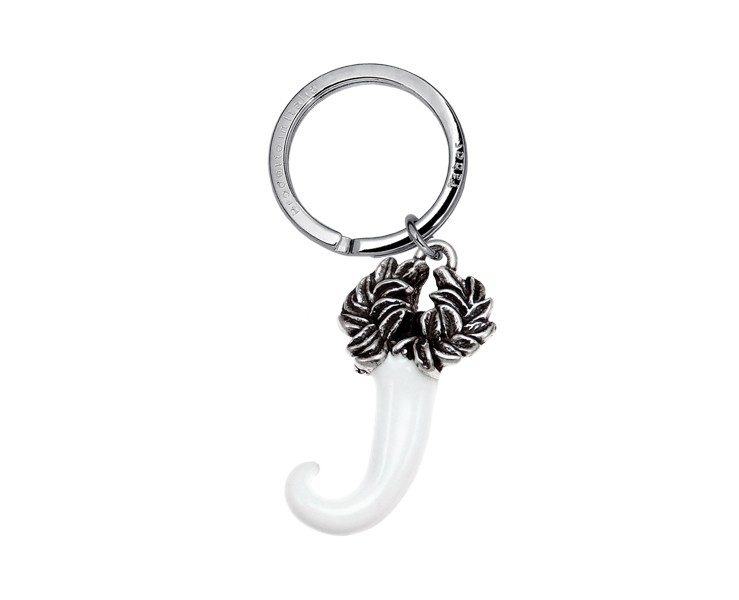 Portachiavi Corno corona alloro smaltato bianco