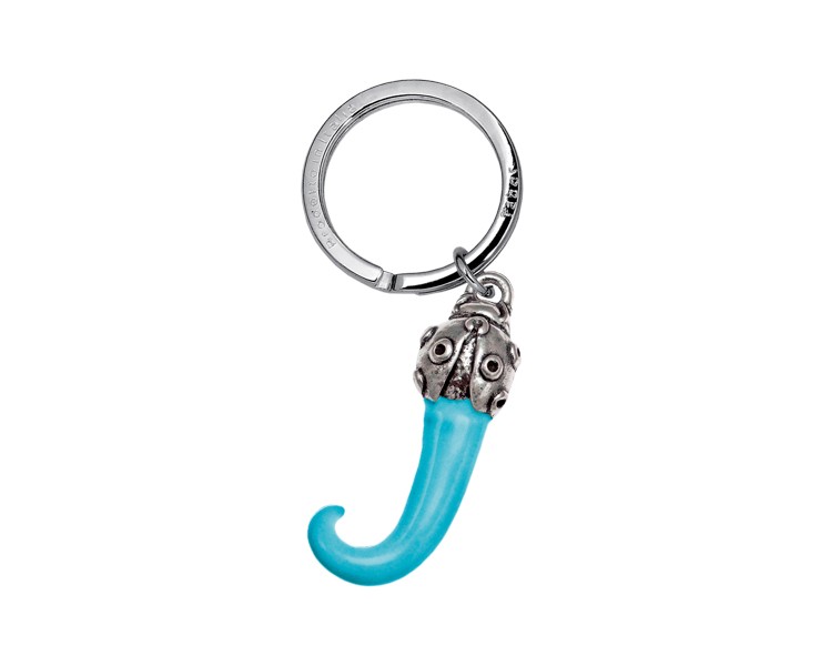 Portachiavi Corno coccinella smaltato celeste