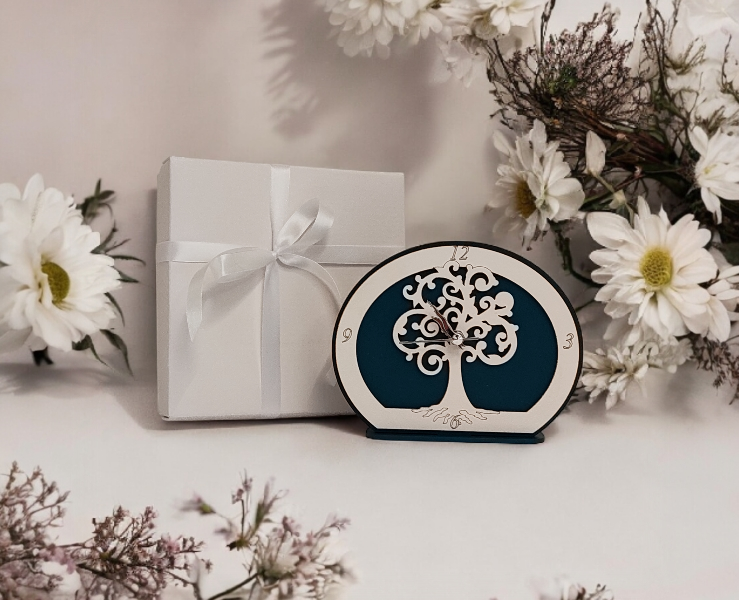 Bomboniera Matrimonio Orologio da Tavolo Albero della Vita in Legno