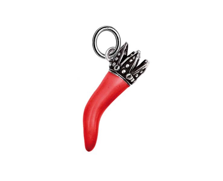 Porta fortuna e tradizione si incontrano in questo elegante ciondolo a forma di corno rosso, arricchito da una raffinata corona in bagno d’argento. Un simbolo di buon auspicio perfetto come bomboniera per qualsiasi evento speciale, dal matrimonio, compleanni, laurea e tante altre.