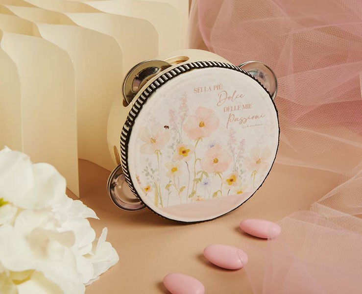 Il Tamburello Decorativo Fiori Rosa è una bomboniera originale e di grande impatto visivo, che combina un elemento musicale giocoso con un messaggio profondamente romantico. Con dimensioni di 10.2x4.2 cm, è un oggetto compatto ma significativo.