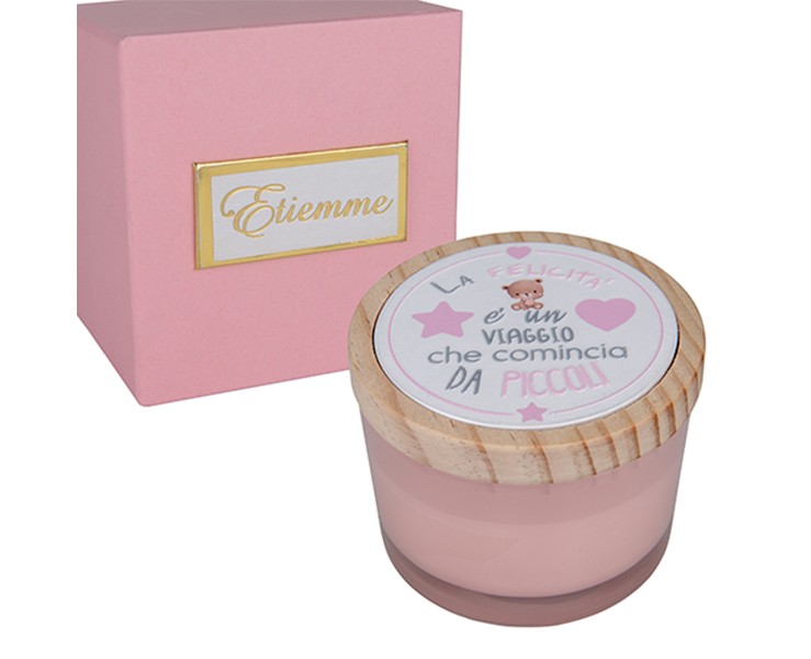 Bomboniera Battesimo CANDELA SFAVILLA ROSA Etiemme