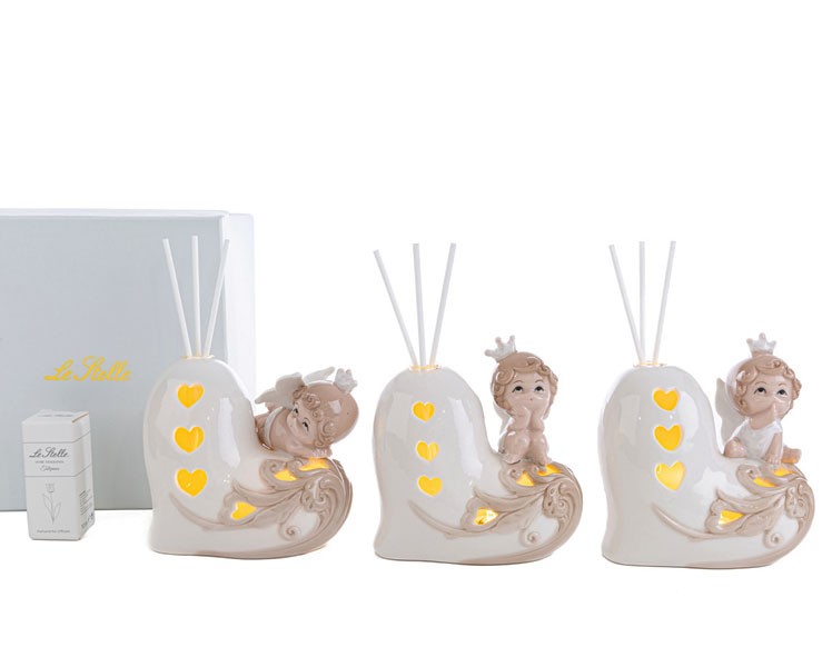Bomboniera Nascita Battesimo Le stelle profumatore angelo su cuore 3ass. led