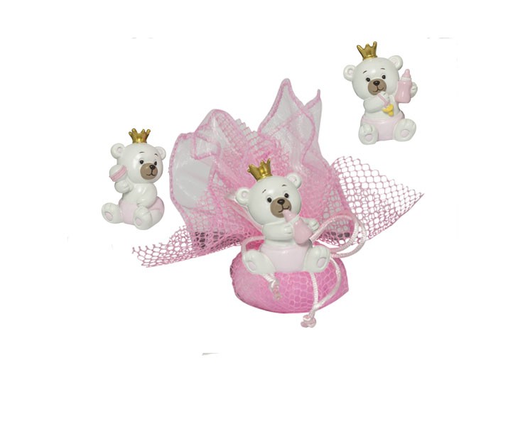 sacchetto nascita battesimo ORSETTO RESINA GIRL CON CORONA ASSORTITO IN 3 MODELLI