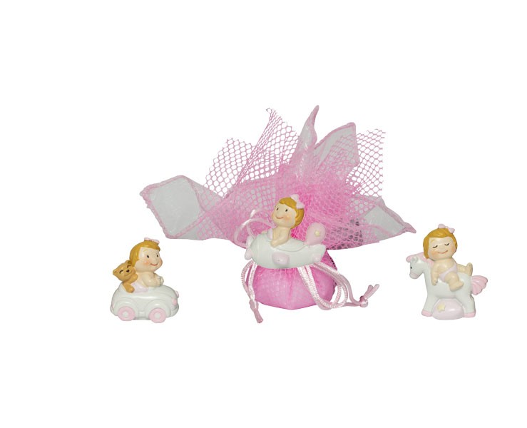 sacchetto nascita battesimo BIMBA RESINA CON AUTOMEZZI ASSORTITO IN 3 MODELLI