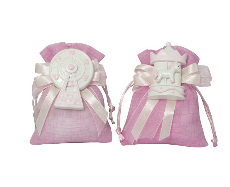 Sacchetto harmony Nascita e Battesimo magnete giostra-ruota luna park rosa resina assortito in 2 modelli