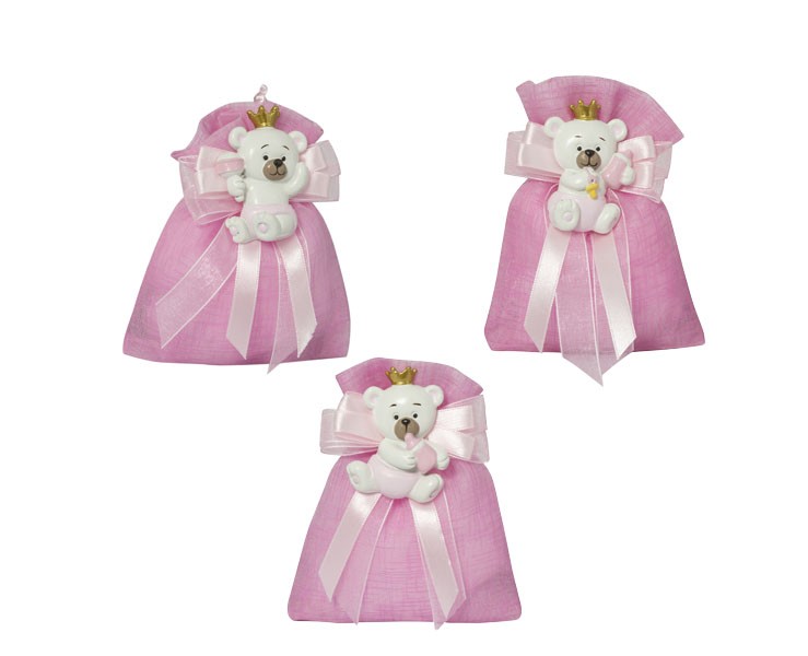 Sacchetto harmony Nascita e Battesimo Magnete orsetto resina girl con corona assortito in 3 modelli
