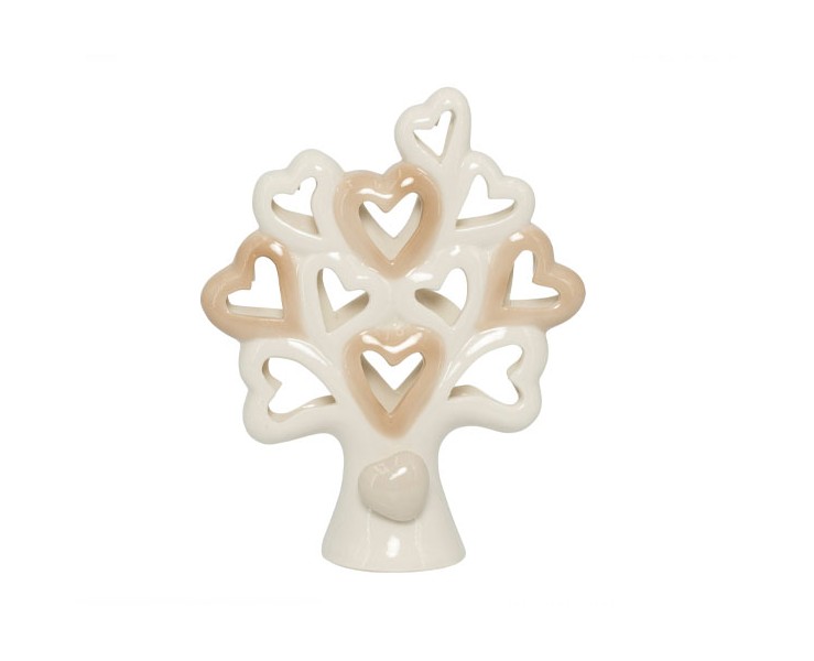 BOMBONIERA MATRIMONIO HARMONY ALBERO DELLA VITA TRAFORATO IN PORC. BIANCO E TORTORA CON LED