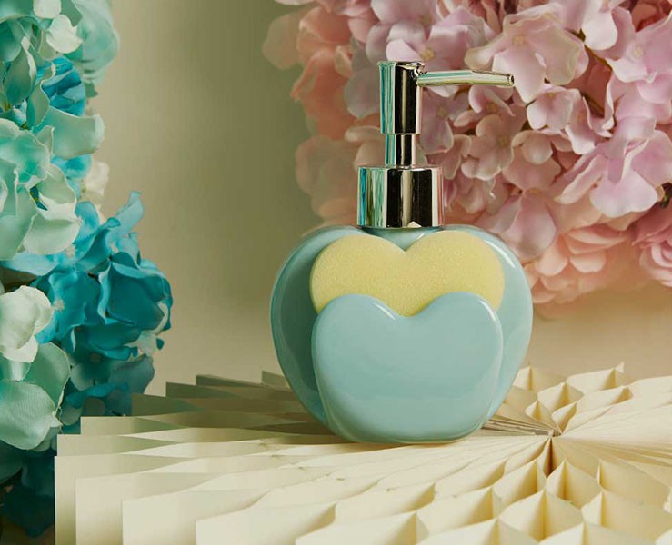 Realizzato in ceramica bianca con doppio cuore in rilievo, questo dispenser porta con sé un messaggio di cura e dolcezza, trasformando ogni bagno o cucina in uno spazio più armonioso.