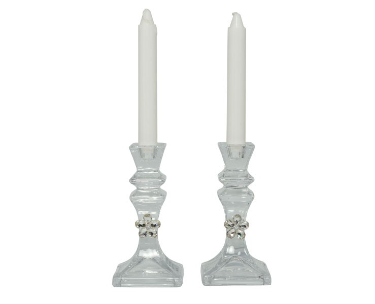 BOMBONIERA MATRIMONIO HARMONY SET 2 PORTA CANDELE CON FIORE CRISTALLO CON CANDELE
