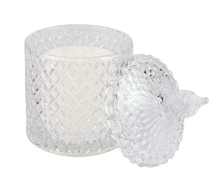 BOMBONIERA MATRIMONIO HARMONY SCATOLA VETRO DIAMANTATO GRANDE CON CANDELA PROFUMATA