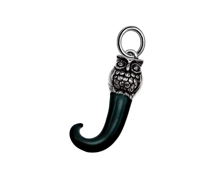 Bomboniera Portafortuna - Ciondolo Corno con Gufo Smaltato Nero