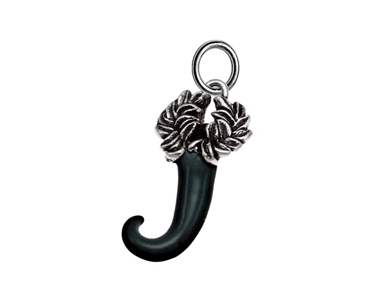Ciondolo Corno corona alloro smaltato nero
