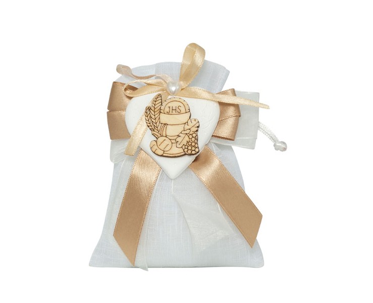 Sacchetto prima comunione harmony tipo lino bianco con gessetto cuore comunione