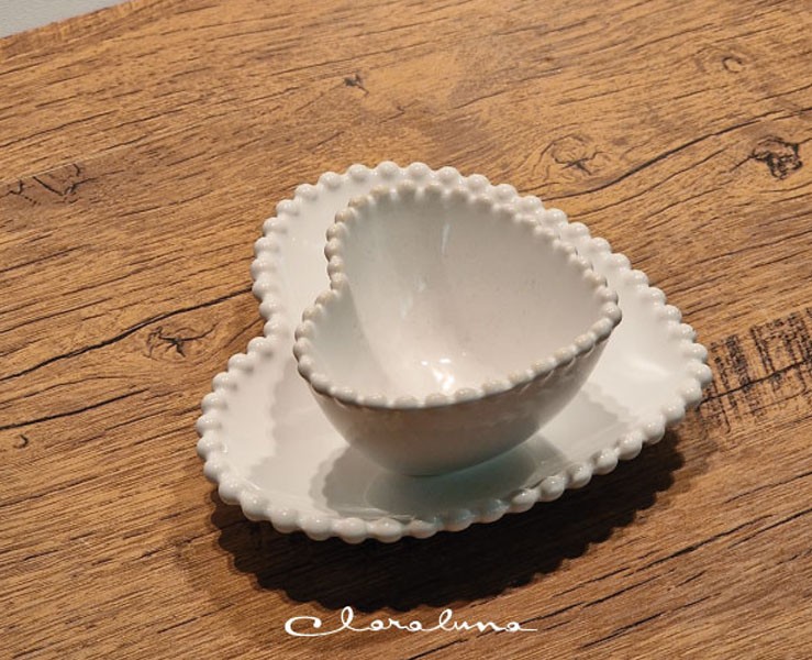 Bomboniera Matrimonio Claraluna bis piattini cuore bianco piccolo e bianco medio