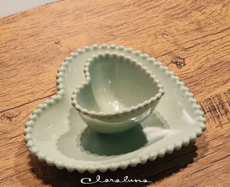 Bomboniera Matrimonio Claraluna bis piattini cuore verde grande e verde piccolo