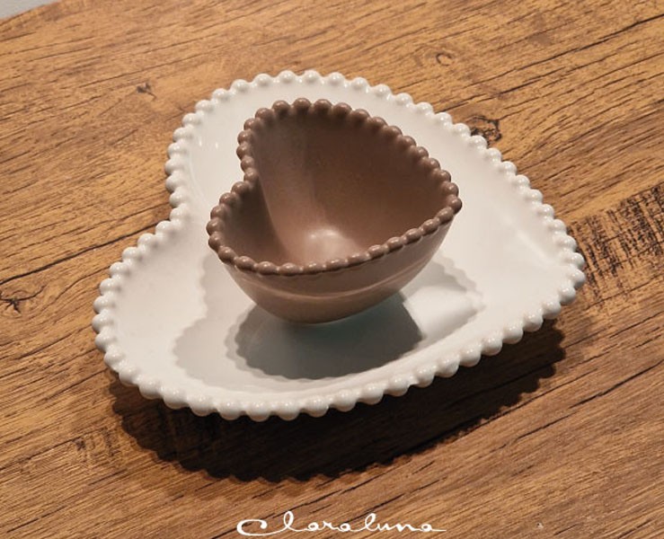 Bomboniera Matrimonio Claraluna bis piattini cuore bianco grande e marrone piccolo