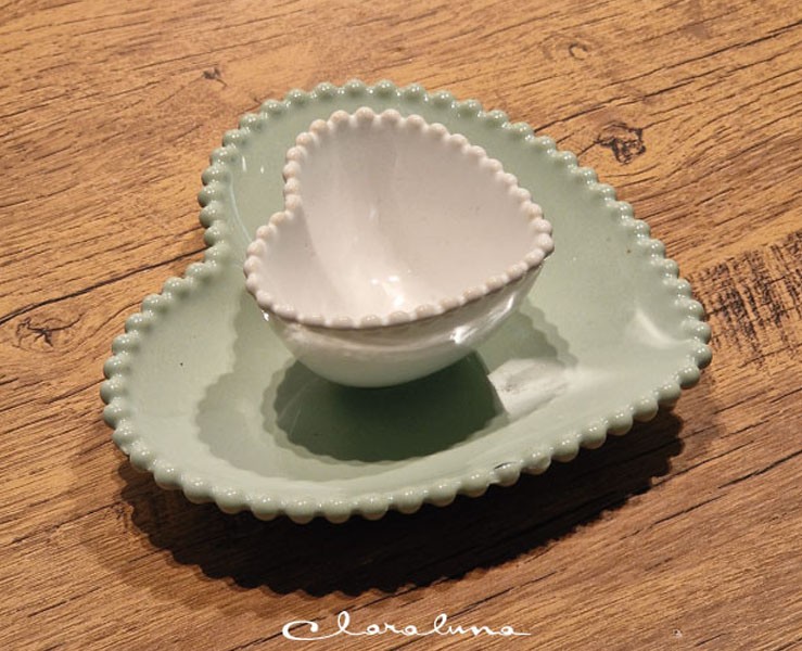 Bomboniera Matrimonio Claraluna bis piattini cuore verde grande e bianco piccolo