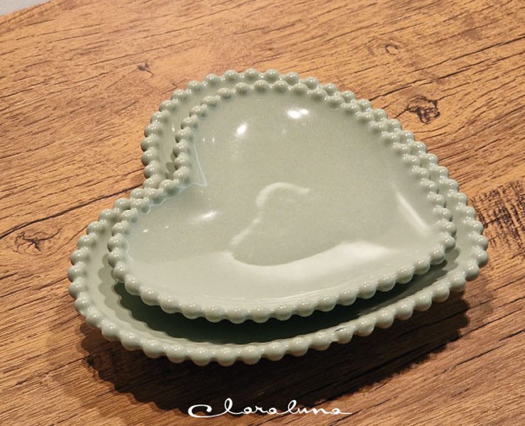 Bomboniera Matrimonio Claraluna bis piattini cuore verde medio e verde grande