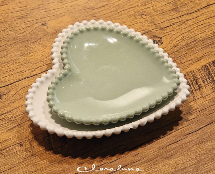 Bomboniera Matrimonio Claraluna bis piattini cuore verde medio e bianco grande