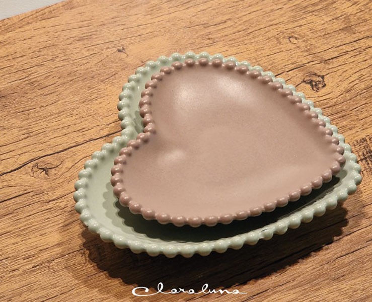 Bomboniera Matrimonio Claraluna bis piattini cuore marrone medio e verde grande