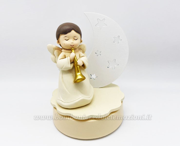 Bomboniera Prima Comunione Mariella Martini carillon luna angioletto con trombetta