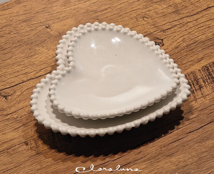 Bomboniera Matrimonio Claraluna bis piattini cuore bianco medio e bianco grande