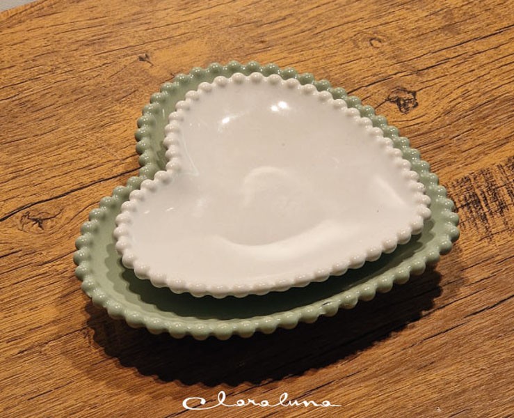 Bomboniera Matrimonio Claraluna bis piattini cuore bianco medio e verde grande