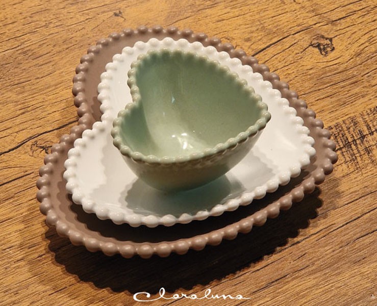 Bomboniera Matrimonio Claraluna tris piattini cuore verde piccolo bianco medio marrone grande