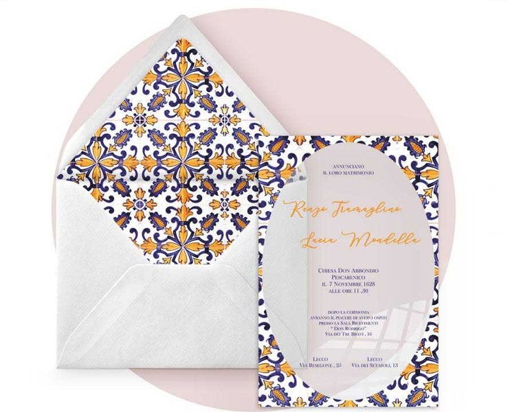 Partecipazione di nozze in plexiglass trasparente rettangolare tema maioliche