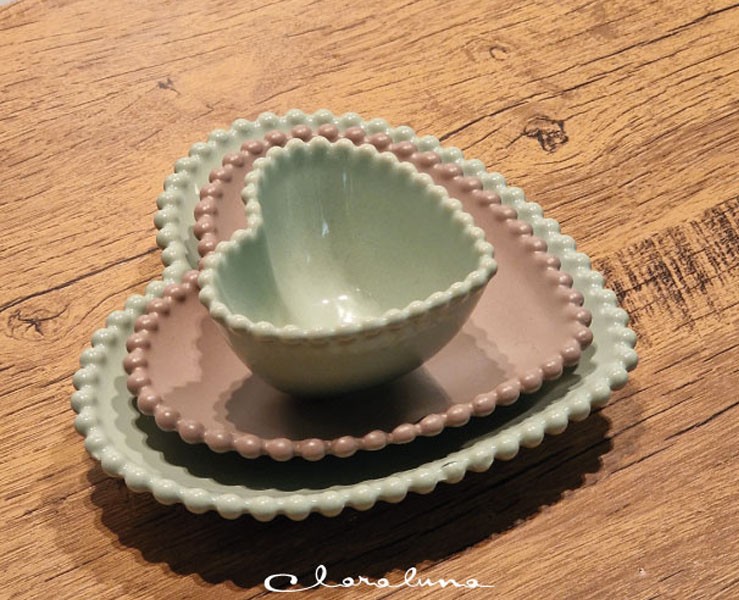 Bomboniera Matrimonio Claraluna tris piattini cuore verde piccolo marrone medio verde grande