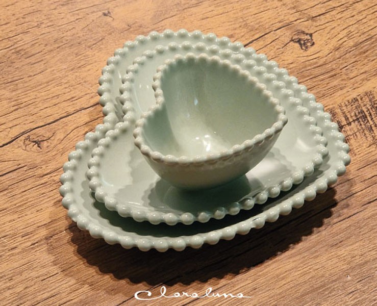 Bomboniera Matrimonio Claraluna tris piattini cuore verde piccolo verde medio verde grande