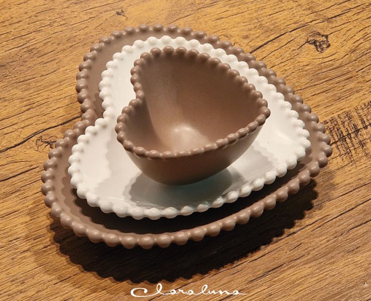 Bomboniera Matrimonio Claraluna tris piattini cuore marrone piccolo bianco medio marrone grande