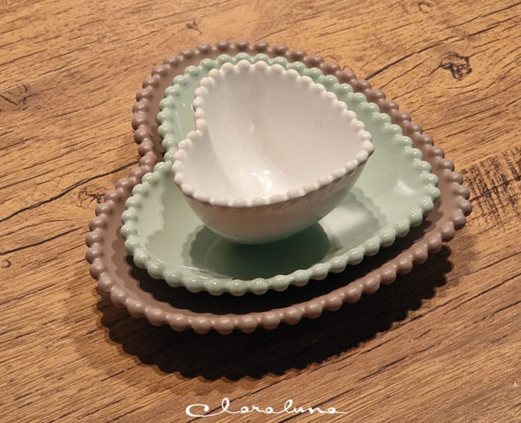 Bomboniera Matrimonio Claraluna tris piattini cuore bianco piccolo verde medio marrone grande