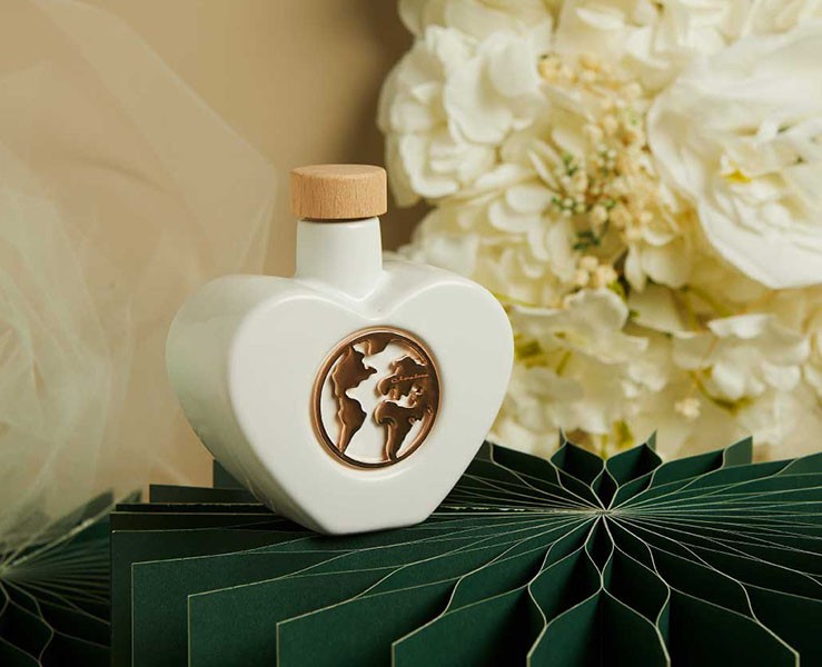 L’Oliera Cuore Claraluna con Mondo Oro Rosa unisce eleganza, simbolismo e stile contemporaneo in un’unica creazione. La forma a cuore in ceramica bianca si fonde con un prezioso dettaglio: il mondo color oro rosa, simbolo di viaggio, unione, nuovi inizi e amore che abbraccia tutto.