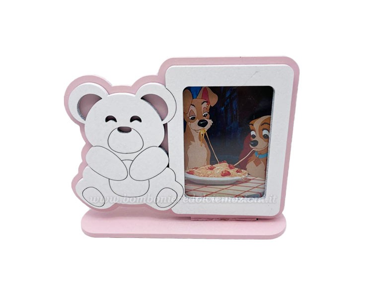 Bomboniera Nascita e Battesimo Mariella Martini portafoto rosa con orsetto