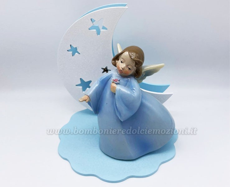 Bomboniera Prima Comunione Mariella Martini angioletto con luna led azzurro grande