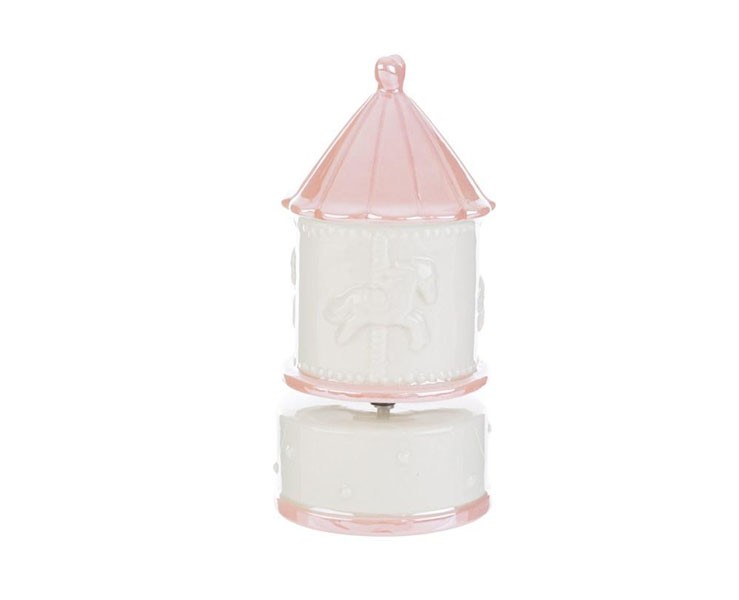 Bomboniera battesimo Carillon Giostrina in Porcellana Rosa con Astuccio