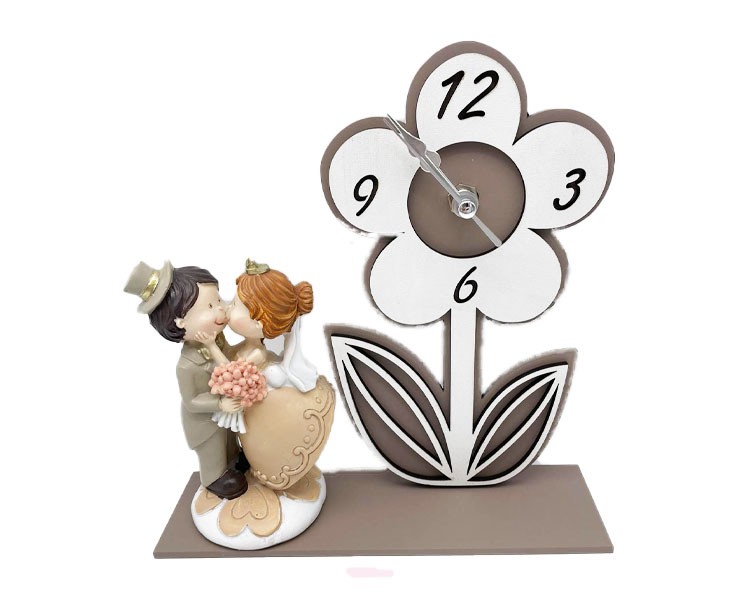 Bomboniera Matrimonio Mariella Martini orologio fiore con sposi