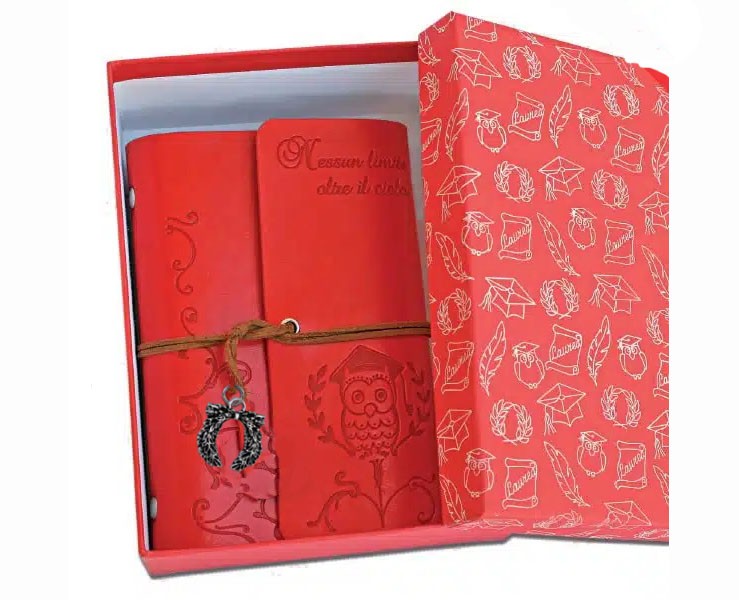 Bomboniera Laurea Tabor agendina blocco note con ciondolo alloro