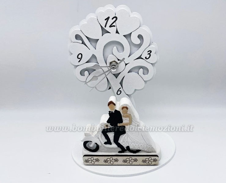 Bomboniera Matrimonio Mariella Martini orologio albero della vita sposi su vespa