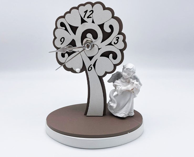 Bomboniera Prima Comunione Mariella Martini orologio albero della vita con angioletto con arpa