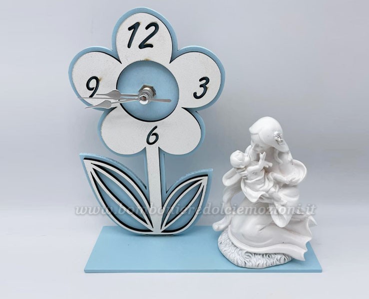 Bomboniera Prima Comunione Mariella Martini orologio fiore azzurro maternità