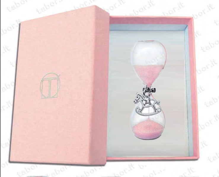 Bomboniera Battesimo Tabor clessidra rosa con ciondolo cavallo dondolo
